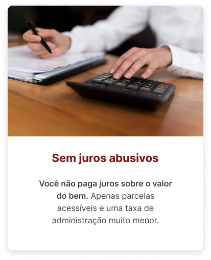 Mesmo após ser contemplado, você continua pagando as parcelas até completar o valor do grupo, de forma previsível e sem juros.